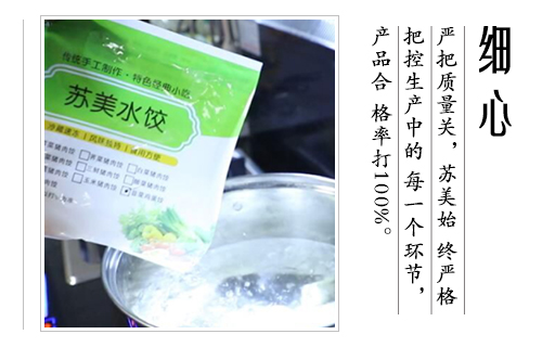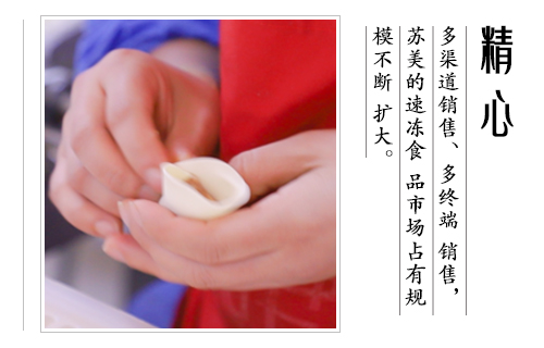 公司產(chǎn)品涵蓋速凍水餃(含手工水餃和大餡水餃)、速凍餛飩、速凍湯圓等三個(gè)系列、30多個(gè)花色品種,主要產(chǎn)品在華東、華西、華北的市場占有率達(dá)18%以上,其中蘇美的芹菜豬肉水餃、韭菜雞蛋水餃以其獨(dú)特的口感,大受消費(fèi)者好評(píng),成為了新晉的網(wǎng)紅美食.